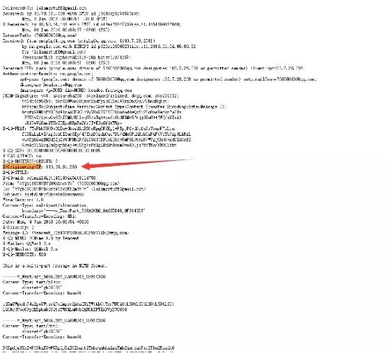 这里特别要说明的一点就是,有些人查不到对方的ip,这是因为如果你用网页版发邮件的话,谷歌系统默认是屏蔽ip的(这个不是绝对的,像上面我已经可以找到对方的ip),但是如果你用很多客户端来发邮件,你用这种方法是可以查询的到对方的ip地址,如outlook,foxmail等常见的邮件发送客户端。